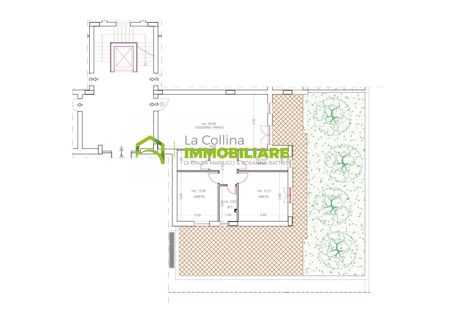 L'immobile proposto ha una superficie di mq 100 ca e si compone di soggiorno con angolo cottura, disimpegno, camera matrimoniale, cameretta, doppi servizi. Patio esterno pavimentato della superficie di mq 60 ca e giardino di mq 70 ca.